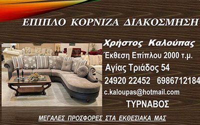 Τελευταία Νέα No results Τυρνάβος - Αγροτικά No results MEDiA ΠΟΛΙΤΙΣΜΟΣ Κηδείες ΑΓΓΕΛΙΕΣ TiRNAVOS WEB TV Μουσική βραδιά γεμάτη συγκίνηση και μνήμες: Ο Τύρναβος τίμησε τον Σταύρο Κουγιουμτζή Το παλιό λατομείο του Τυρνάβου ή αλλιώς η χωματερή - To βίντεο μιλάει από μόνο του Κατσαφάδος από το Δαμάσι: «Ως το τέλος Δεκεμβρίου θα έχουν ολοκληρωθεί όλες οι αυτοψίες Ο Τύρναβος απέκτησε νέο, σύγχρονο Σκοπευτήριο – Εντυπωσιακό ξεκίνημα με αγώνες πρακτικής σκοποβολής TirnavosPress Web TV 2,73 χιλ. εγγεγραμμένοι 113 χρόνια από τη Μάχη του Σαραντάπορου: Εκδήλωση της 1ης Στρατιάς στο Χάνι Χατζηγώγου Με συγκίνηση και εθνική υπερηφάνεια τιμήθηκε η έναρξη των Βαλκανικών Πολέμων στον Τύρναβο