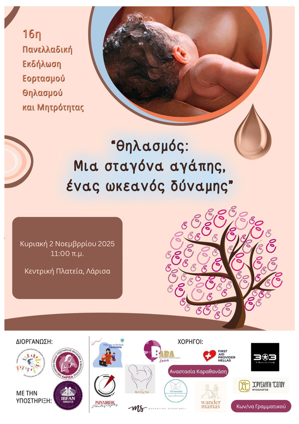 16η Πανελλαδική εκδήλωση Εορτασμού Θηλασμού και Μητρότητας – Θηλασμός: Μια σταγόνα Αγάπης, ένας ωκεανός δύναμης!