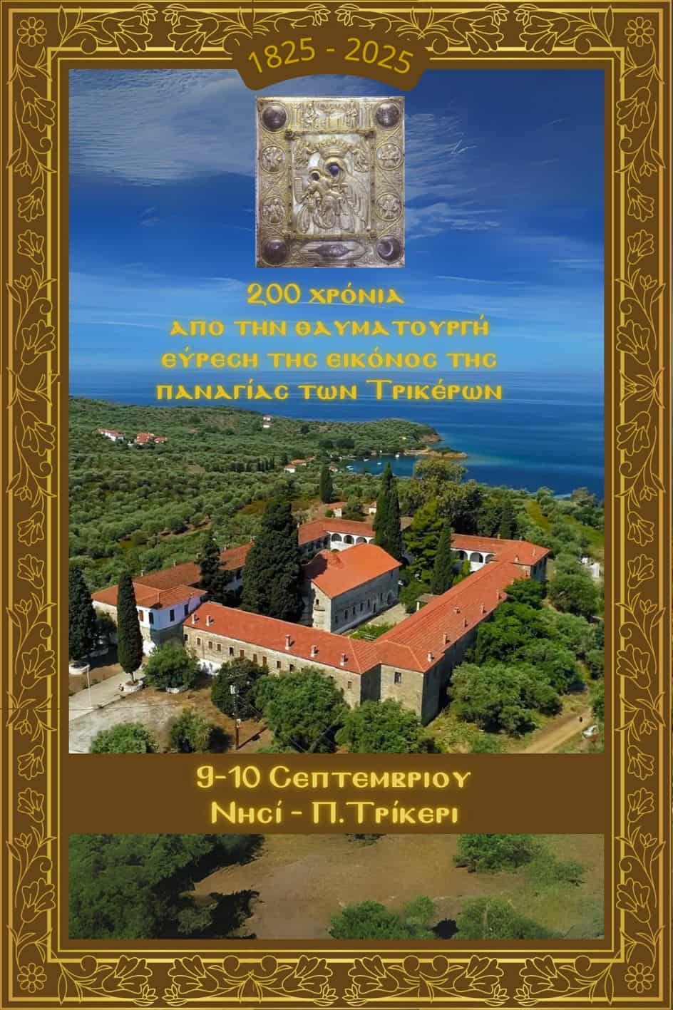Με τη συμπλήρωση των 200 χρόνων από την θαυματουργή εύρεση της εικόνας της Παναγίας των Τρικέρων (1825-2025), στο νησί Τρίκερι θα πραγματοποιηθεί στις 9 και 10 Σεπτεμβρίου μεγάλη θρησκευτική γιορτή.