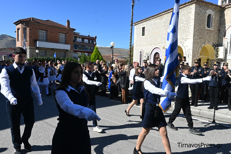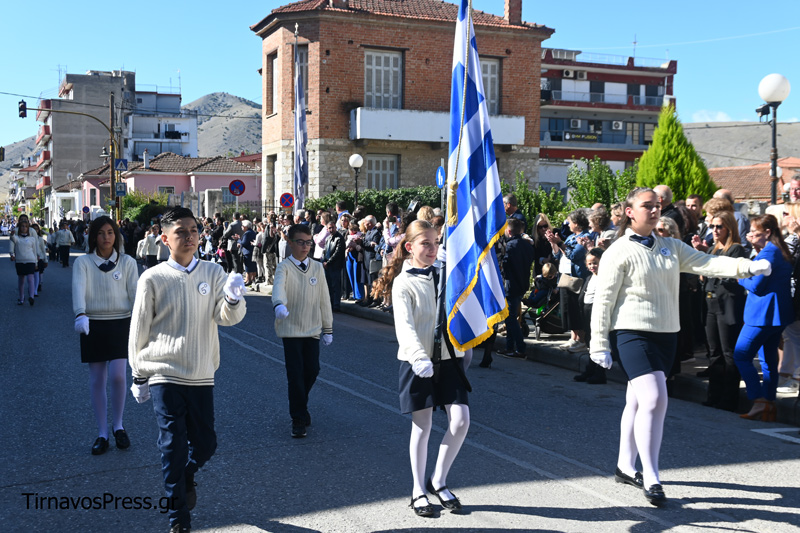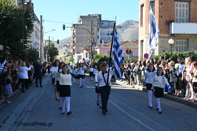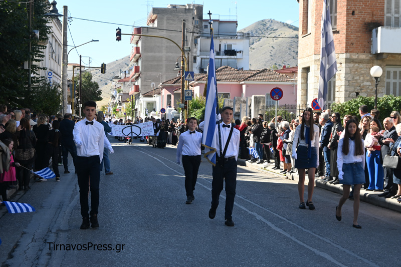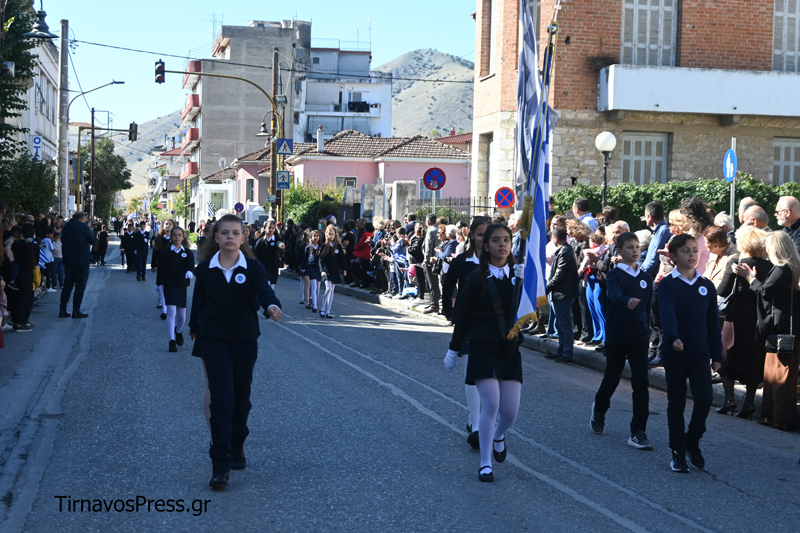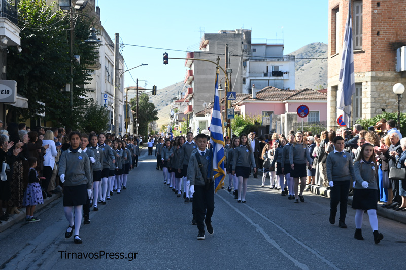 Ακολούθησαν με υπερηφάνεια τα Δημοτικά Σχολεία, τα Γυμνάσια και τα Λύκεια της πόλης. Την αρχή έκανε το 1ο Δημοτικό Σχολείο Τυρνάβου, ενώ ξεχωριστή παρουσία είχαν οι μαθητές του ΓΕΛ και του ΕΠΑΛ Τυρνάβου, οι οποίοι απέσπασαν θερμό χειροκρότημα για τον άψογο βηματισμό και την πειθαρχία τους. Πολλά τμήματα παρέλασαν με παραδοσιακές στολές, προσδίδοντας χρώμα και συγκίνηση στην εκδήλωση.