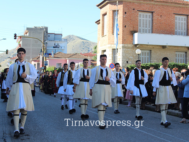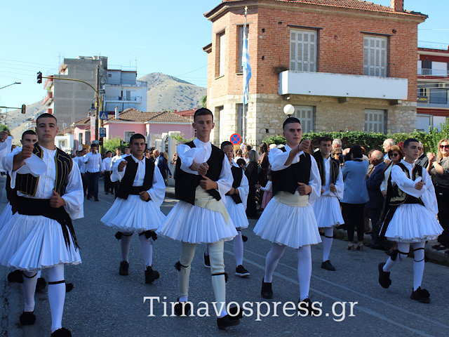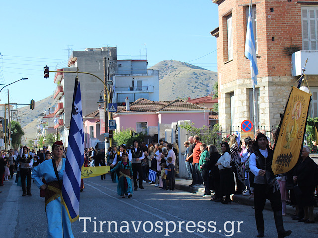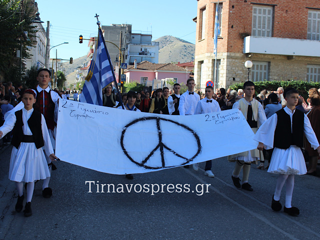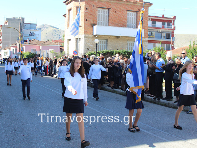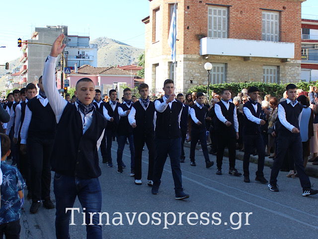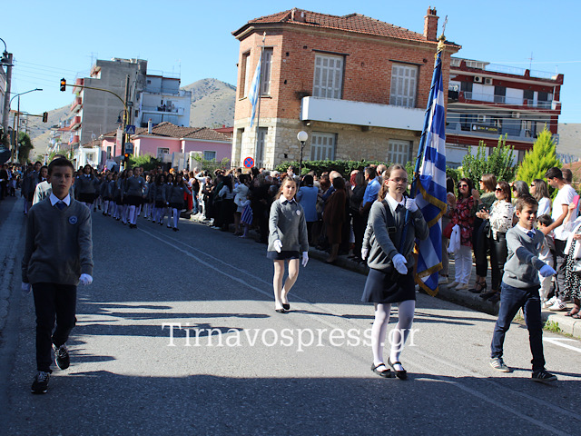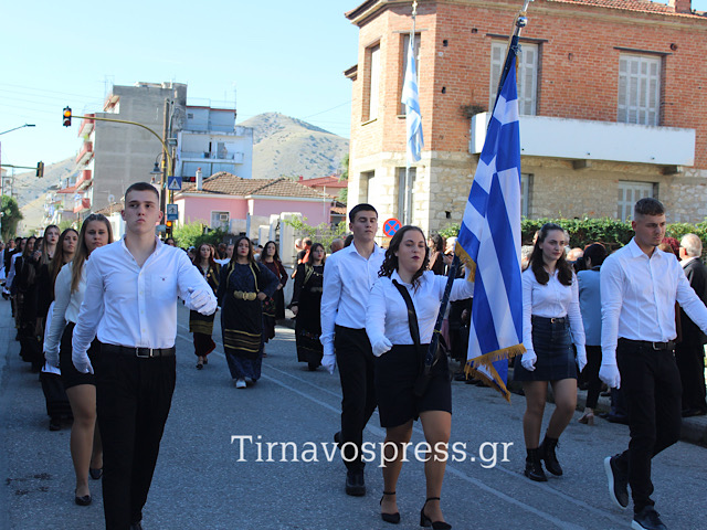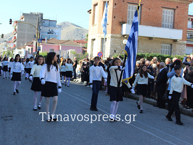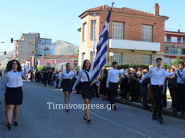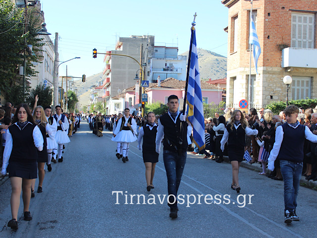 Στην συνέχεια την παρέλαση άνοιξε η Φιλαρμονική του Δήμου Τυρνάβου με τον Μαέστρο της Θέμη Σαμαντζή. Ακολούθησαν τα Δημοτικά Σχολεία, τα Γυμνάσια και τα Λύκεια. Την αρχή έκανε το 1ο Δημοτικό Σχολείο και ακολούθησαν όλα τα υπόλοιπα σχολεία ενώ μεγάλο χειροκρότημα απέσπασαν οι μαθητές του ΓΕΛ ΤΥΡΝΑΒΟΥ και του ΕΠΑΛ με τον άψογο βηματισμό τους με πολλά τμήματα να είναι ντυμένα με παραδοσιακές στολές. Ο Σύλλογος Ποντίων όπως κάθε χρόνο έκλεισε την παρέλαση.