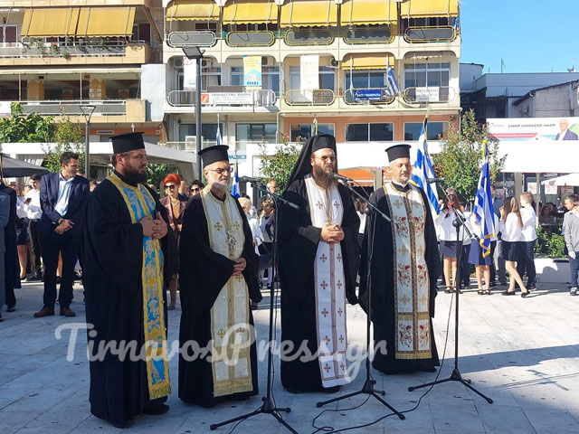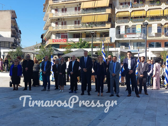 Το πρωί τελέστηκε η Επίσημη δοξολογία στον Μητροπολιτικό Ναό της Παναγίας Φανερωμένης Τυρνάβου στην οποία έλαβε μέρος όλος ο ιερός κλήρος της πόλης. Ακολούθησε επιμνημόσυνη δέηση στην πλατεία, κατάθεση στεφάνων και ο Πανηγυρικός της ημέρας λόγος από τον κ. Νικόλαο Πορτέση, Διευθυντή του 2ου Γυμνασίου Τυρνάβου.