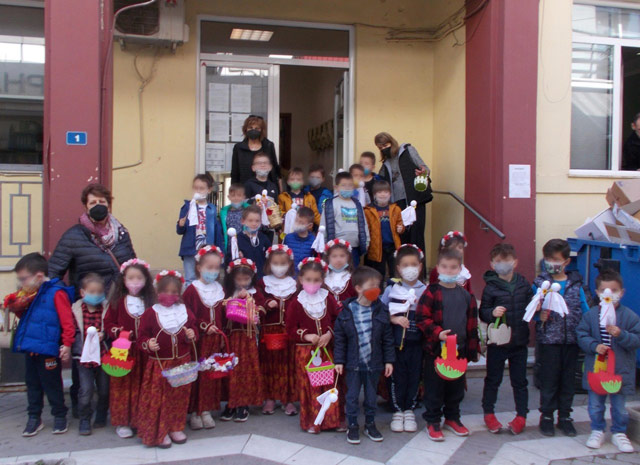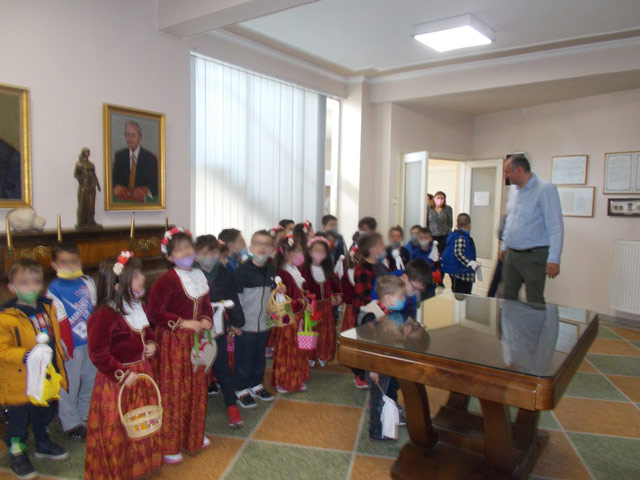 Αναβιώνοντας το έθιμο, τα παιδιά των 5ου και 7ου Νηπιαγωγείων Τυρνάβου τραγούδησαν τα κάλαντα του Λαζάρου στον δήμαρχο της πόλης μας και τους καταστηματάρχες.