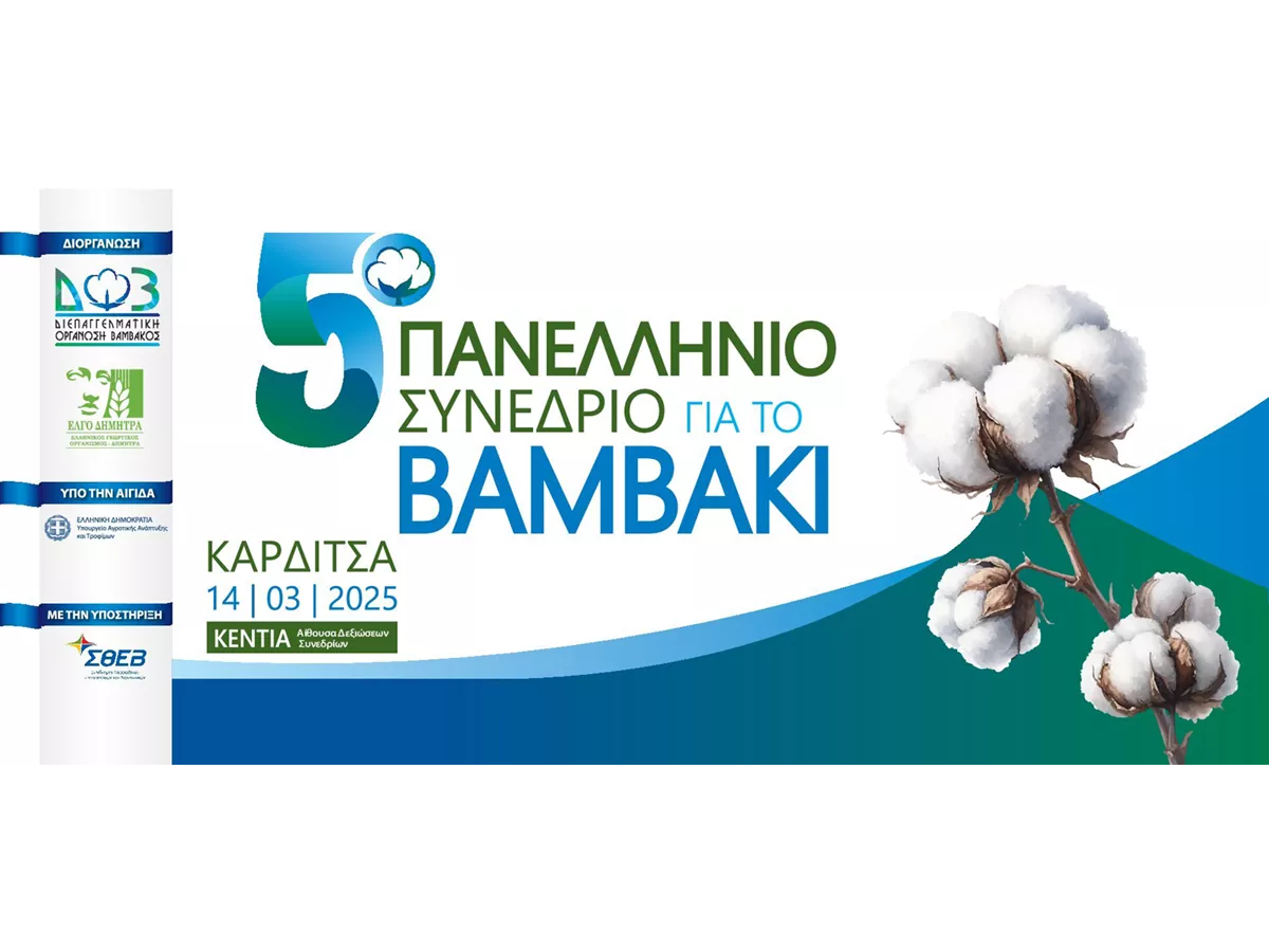 Η Διεπαγγελματική Οργάνωση Βάμβακος – ΔΟΒ σε συνεργασία με τον ΕΛΓΟ ΔΗΜΗΤΡΑ διοργανώνουν το «5ο Πανελλήνιο Συνέδριο για το βαμβάκι», την Παρασκευή 14 Μάρτιου και ώρα έναρξης 09:00, στην Καρδίτσα (Αίθουσα Δεξιώσεων-Συνεδρίων ΚΕΝΤΙΑ).