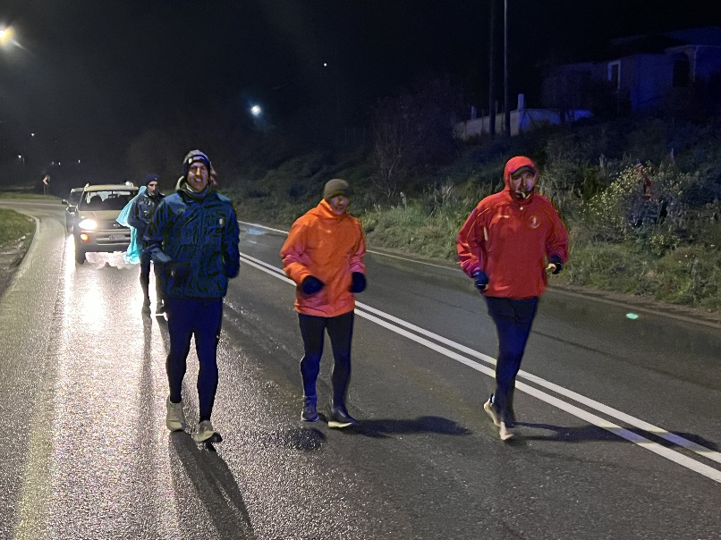 Στο τελικό κομμάτι της διαδρομής από τα βρισιά Λάρισας ως το τέλος της διαδρομής τον ακολουθούν δρομείς του συλλόγου δρομέων Φαλάνης