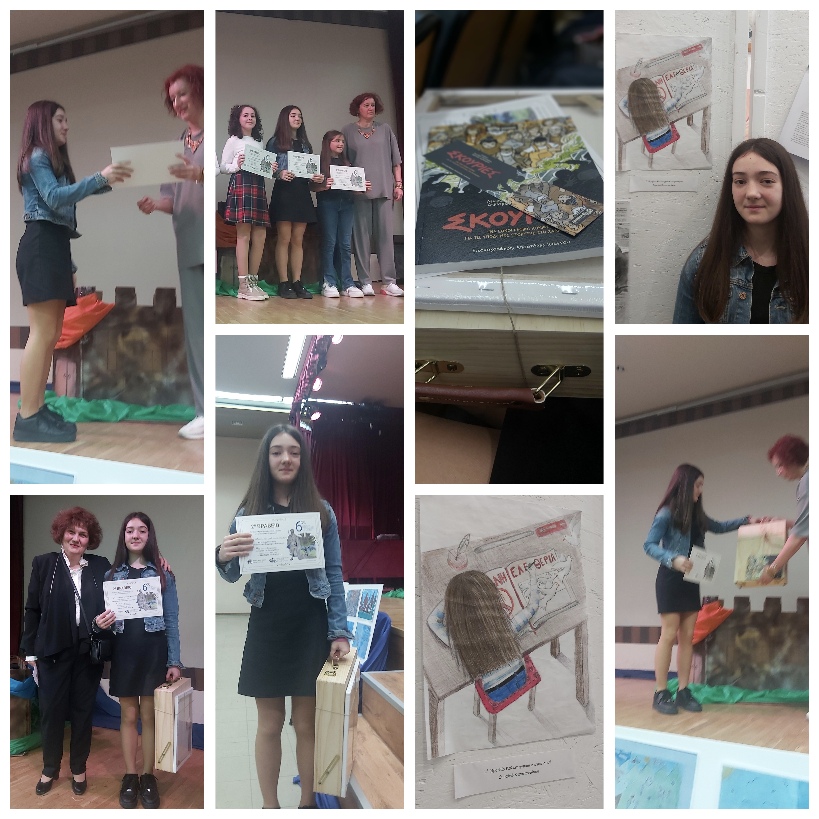 Ιδιαίτερη τιμή για το σχολείο μας αποτελεί η διάκριση της μαθήτριας ΚΩΝΣΤΑΝΤΑΚΟΥ ΣΥΡΑΪΝΩ που ξεχώρισε με την καλλιτεχνική της δημιουργία και κέρδισε το 2ο ΒΡΑΒΕΙΟ.