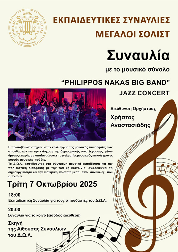 Η Επιτροπή Ισότητας Φύλων του Δήμου Λαρισαίων, σε συνεργασία με την Ορχήστρα Παραδοσιακής Μουσικής του Μουσικού Σχολείου Λάρισας, σας προσκαλούν στη μουσική εκδήλωση “Ωχ Αμάν Ελενάκι μου” – Αληθινές Ιστορίες έμφυλης βίας που έγιναν τραγούδια. Η εκδήλωση θα πραγματοποιηθεί την Κυριακή 16 Φεβρουαρίου 2025, στις 7:00 μ.μ., στο Δημοτικό Ωδείο Λάρισας, με είσοδο ελεύθερη για όλους.