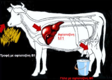 Γάλα: Οι α-φαλατοξίνες (κυρίως η Aflatoxin B1) μετατρέπονται στο ήπαρ σε Aflatoxin M1 και περνούν στο γάλα. Το αγελαδινό γάλα, που συχνά εμφιαλώνεται άμεσα, είναι ιδιαίτερα εκτεθειμένο. Κρέας: Μέσω του φαινομένου «carry-over», μικρές ποσότητες τοξινών μπορούν να βρεθούν στο κρέας. Τυριά: Η ωρίμανση (π.χ. φέτα 3 μηνών) μπορεί να μειώσει τα επίπεδα, αλλά δεν τα εξαφανίζει πλήρως.