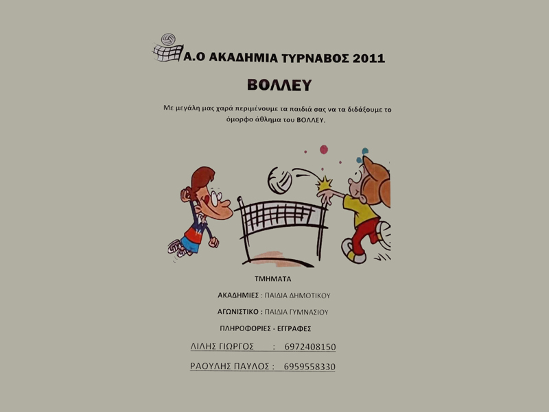 Α.Ο Ακαδημία Τύρναβος 2011 ΒΟΛΛΕΥ: Έφτασε η στιγμή να μεταλαμπαδεύσουμε την γνώση μας