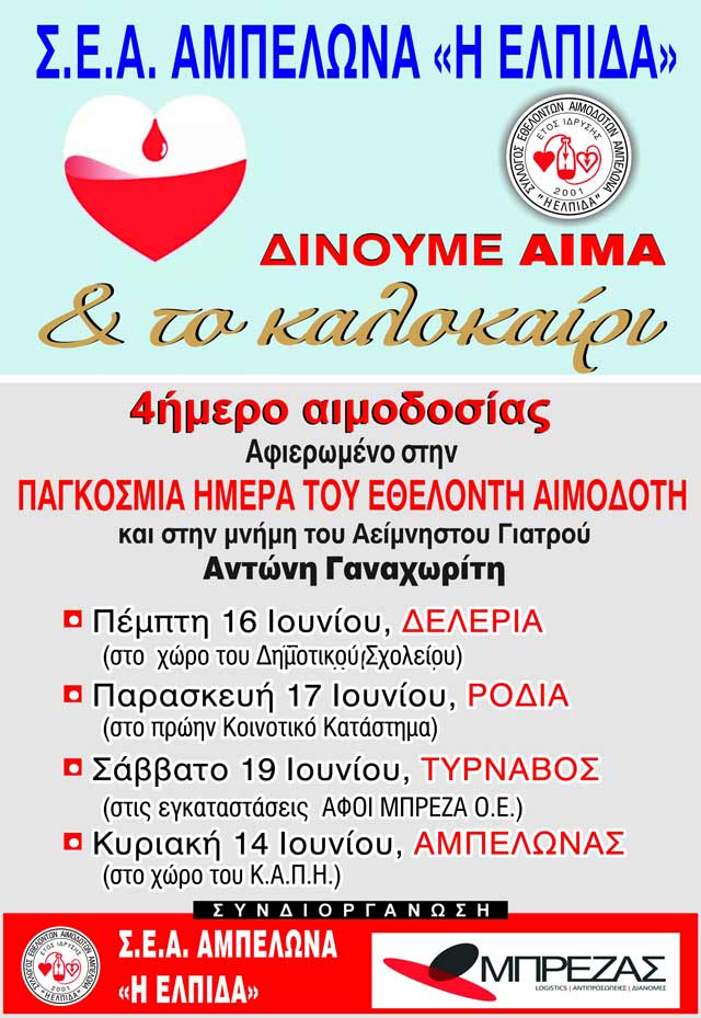 Σ.Ε.Α. Αμπελώνα Η ΕΛΠΊΔΑ Σύλλογος Εθελ. Αιμοδοτών