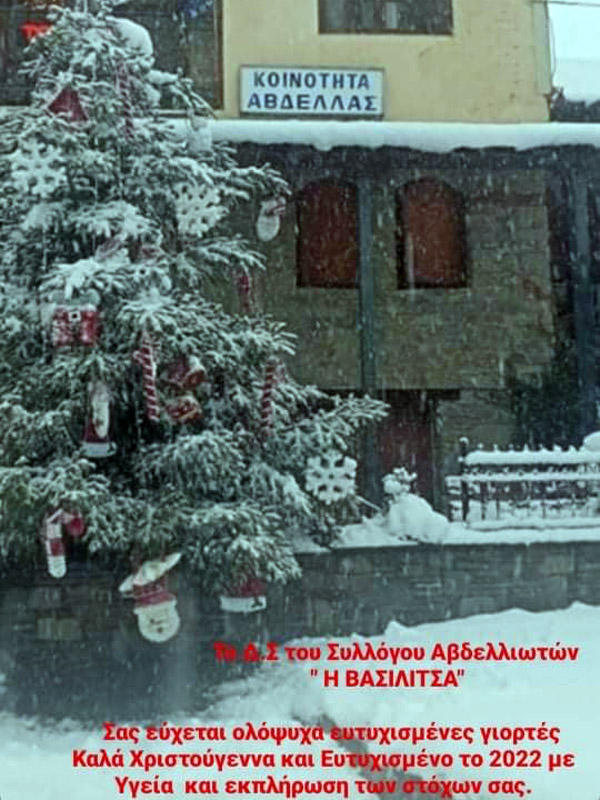 Ας υποδεχθούμε όλοι μαζί..2022 νέα Χρόνια, με νέες Ελπίδες, νέα Όνειρα και νέες Προσδοκίες που θα αποτελέσουν την κινητήριο μας δύναμη έτσι ώστε όλοι μαζί να ξανασμίξουμε πάλι και όντας μια μεγάλη αγκαλιά να ξανακερδίσουμε τις ζωές μας και να ξανανταμώσουμε το Καλοκαίρι όλοι μαζί στην υπέροχη Αβδέλλα μας.