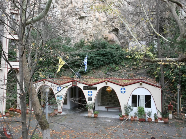 Ακριβώς δίπλα από το ναό της Αγίας Παρασκευής βρίσκεται μία μικρή σπηλιά. Εκεί είναι και το αρχικό προσκύνημα, όπου στο τέλος της σπηλιάς από μία οπή στο βράχο αναβλύζει το θαυματουργό αγίασμα της Αγίας Παρασκευής. Η σπηλιά είναι τόσο μικρή που κάθε φορά χωράει μετά βίας μόνο ένας άνθρωπος και αν είναι αρκετά ψηλός πρέπει να μπει σκυμμένος.