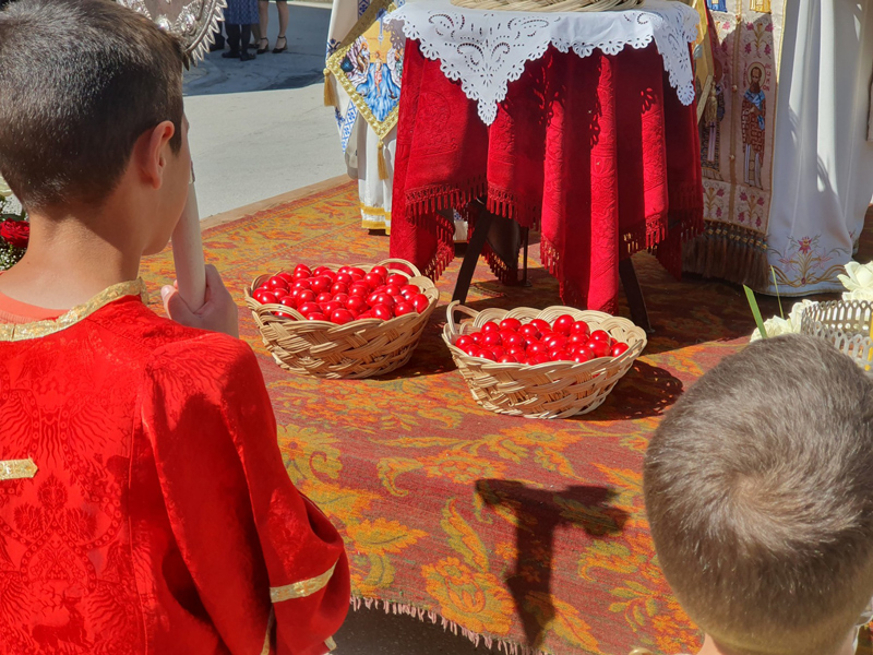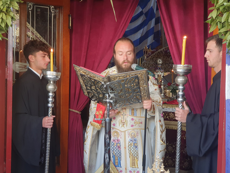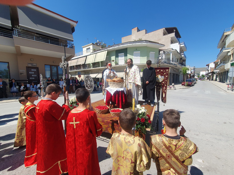 Ο Αρχιερατικός Επίτροπος Τυρνάβου Πατήρ Γεώργιος με τον π. Ιάκωβο τέλεσαν την Ακολουθία ενώ όλοι μαζί κλήρος και πιστοί έψαλαν δυνατά το Χρήστος Ανέστη και το τροπάριο του Αγίου.