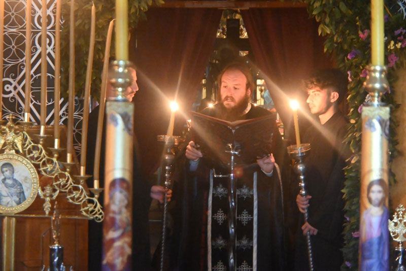 Η κυκλοφορία γύρω από τον Ναό διεκόπη για να πραγματοποιηθεί η συγκινητική αναπαράσταση της Πορείας προς τον Γολγοθά από τον π. Ιάκωβο. Ο ιερέας, ενσαρκώνοντας τον Εσταυρωμένο, άρει τον Σταυρόν του και περιπατεί ενώπιον των πιστών, οι οποίοι παραμερίζουν και σκύβουν εκστασιασμένοι, γεμάτοι δέος και συγκίνηση.