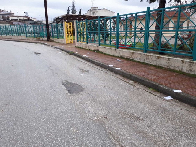 Άγνωστοι πέταξαν τρικάκια έξω από σχολείο στον Τύρναβο