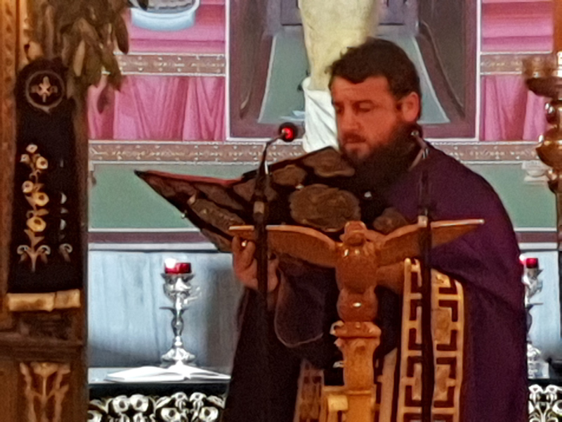 Ο π. Δημήτριος τέλεσε την Ιερή Ακολουθία με Πρωτοψάλτη τον Καθηγητή Βυζαντινής Μουσικής κ Χριστόφορο Καρυώτη που τον συνόδευαν χορωδία εξαίρετων ψαλτών.
