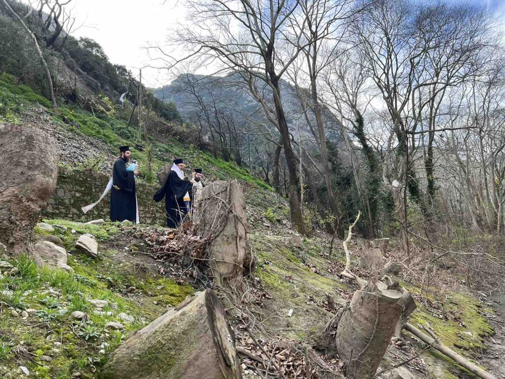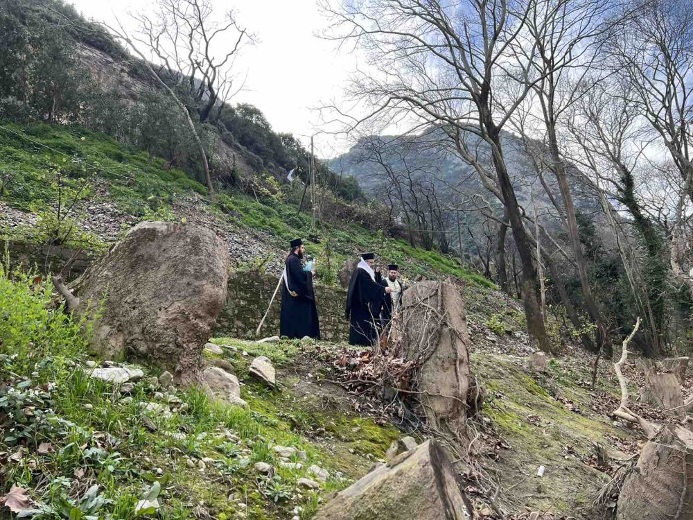 Κατά τη διάρκεια της Ακολουθίας ο Σεβασμιώτατος, εμφανώς συγκινημένος, παρατηρούσε την καταστροφή, το γύρο τοπίο και επίσης την εικόνα ερήμωσης και εγκατάλειψης που σήμερα έχει το Pροσκύνημα.