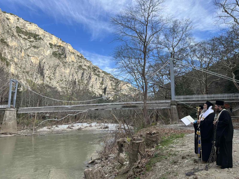 Στο κατεστραμμένο Ιερό Προσκύνημα της Αγίας Παρασκευής Τεμπών, στην απέναντι όχθη, μετέβη σήμερα ο Σεβασμιώτατος Μητροπολίτης Λαρίσης και Τυρνάβου κ. Ιερώνυμος προκειμένου να τελέσει την Ακολουθία της ρίψεως του Σταύρου στα ύδατα του ποταμού Πηνειού.