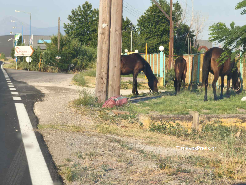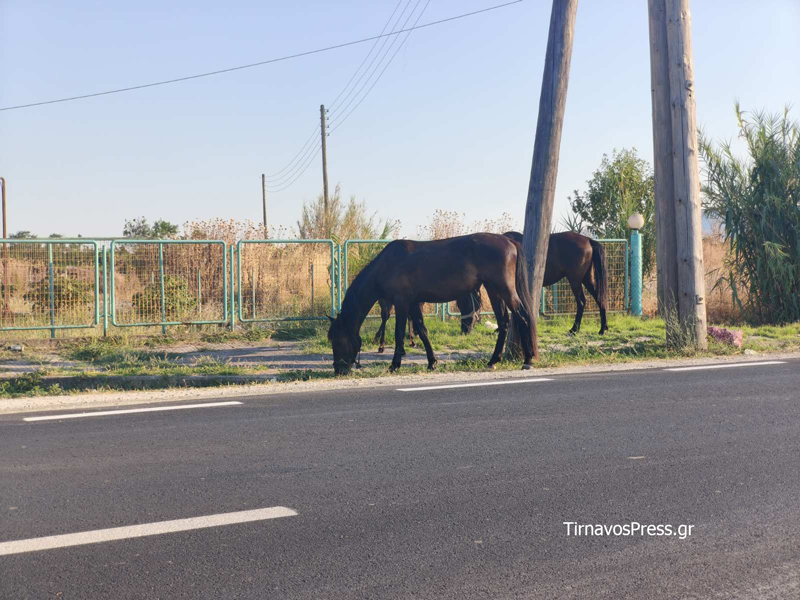 Αντιμέτωποι με ένα επικίνδυνο και ασυνήθιστο θέαμα βρέθηκαν το απόγευμα της Τετάρτης διερχόμενοι οδηγοί στον δρόμο Τυρνάβου – Αμπελώνα, λίγο έξω από τον Τύρναβο. Τα άλογα κινούνταν ελεύθερα στην άκρη του οδοστρώματος, δημιουργώντας σοβαρό κίνδυνο πρόκλησης τροχαίων ατυχημάτων, τόσο για τους οδηγούς όσο και για τα ίδια τα ζώα.