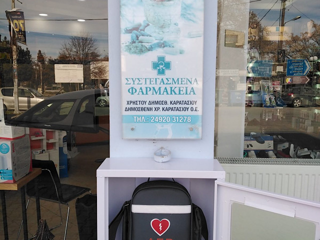 Τέλος θα θέλαμε να ευχαριστήσουμε τον ιδιοκτήτη του Φαρμακείου κ. Καρατάσιο Δημοσθένη για την ευγενή παραχώρηση του χώρου τοποθέτησης του Εξωτερικού Απινιδωτή.
