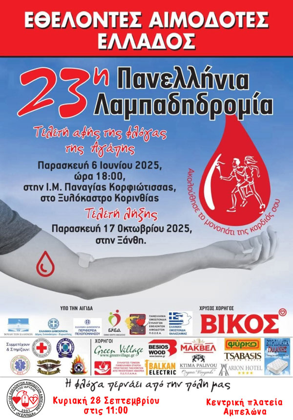 Αμπελώνας: Η “Φλόγα της Αγάπης” φτάνει στις 28 Σεπτεμβρίου με την 23η Πανελλήνια Λαμπαδηδρομία Εθελοντικής Αιμοδοσίας