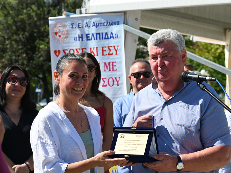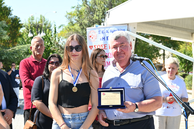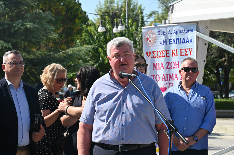 Παράλληλα, σήμερα στον ίδιο χώρο πραγματοποιήθηκε και η άλλη μεγάλη εκδήλωση του Συλλόγου “Η ΕΛΠΙΔΑ” για την υποδοχή της φλόγας της 22ης Πανελλήνιας Λαμπαδηδρομίας Εθελοντών Αιμοδοτών στον Αμπελώνα.