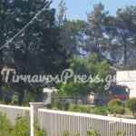 Πιο συγκεκριμένα επιχείρησαν 6 Πυροσβεστικά οχήματα με 30 άντρες, 3 βοηθητικά, εναέρια μέσα, η υδροφόρα του Δήμου Τυρνάβου και πεζοπόρα τμήματα της πυροσβεστικής.