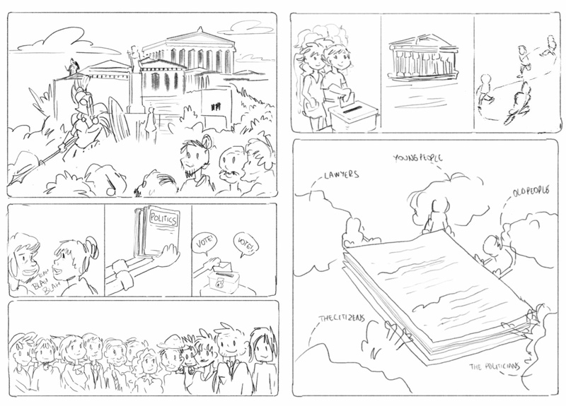 Το όνομα του έργου, «DEMOCRACY PANELS», είναι ένα έξυπνο λογοπαίγνιο διττής σημασίας: τα “Panels” ως μια μικρή ομάδα ανθρώπων που επιλέγουν να συζητήσουν δημόσια τις απόψεις τους αναφορικά με την δημοκρατία και τις διαδικασίες της σε περιφερειακό επίπεδο, και “Panels” ως τα καρέ μιας σελίδας κόμικς, καθώς το τελικό παραδοτέο αυτού του έργου είναι ένας οδηγός κόμικς.
