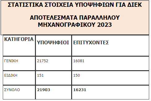 Πίνακας 3: Στατιστικά στοιχεία υποψηφίων για τα αποτελέσματα του Παράλληλου Μηχανογραφικού 2023.