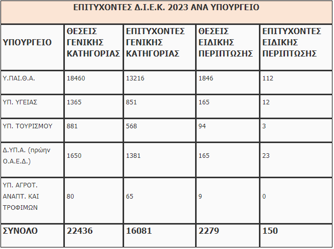 Ταυτόχρονα, θα υπάρχει στην ίδια ιστοσελίδα σύνδεσμος με μια λίστα με τους επιτυχόντες, η οποία περιέχει μόνο τον κωδικό κάθε υποψηφίου και τα στοιχεία της επιτυχίας του και όχι τα ονομαστικά στοιχεία του.