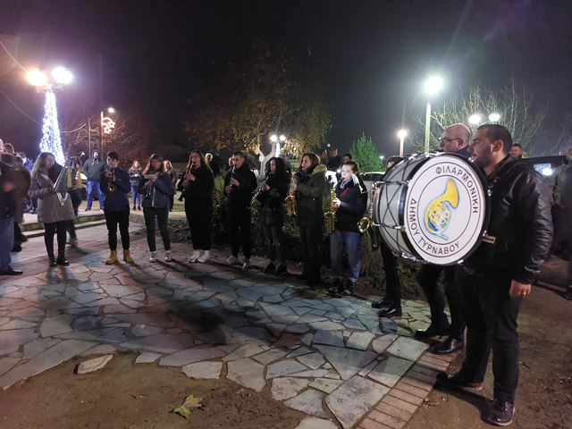 Η Φιλαρμονική του Δήμου Τυρνάβου έπαιξε χριστουγεννιάτικη μουσική και έδωσε μια νότα γιορτής. Ο Δήμαρχος Τυρνάβου Γιάννης Κόκουρας ευχήθηκε καλές γιορτές με υγεία ενώ με την σειρά τους τις ευχές τους έδωσαν και οι Πρόεδροι των κοινοτήτων.