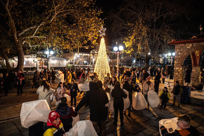 Η βραδιά κορυφώθηκε με την εντυπωσιακή στιγμή που το Χριστουγεννιάτικο δέντρο φωταγωγήθηκε, ενώ δεκάδες φαναράκια απελευθερώθηκαν στον ουρανό, στέλνοντας ευχές για υγεία, αγάπη και ευτυχία.