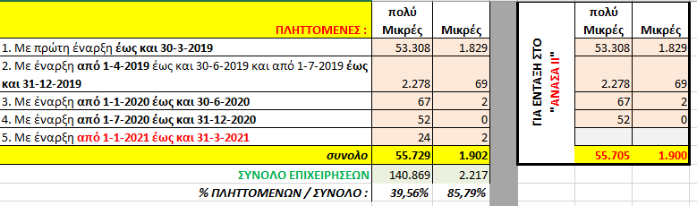 ΑΝΑΣΑ ΙΙ στο τέλος του 2021 με αποκλειστικό κριτήριο τη μείωση του τζίρου