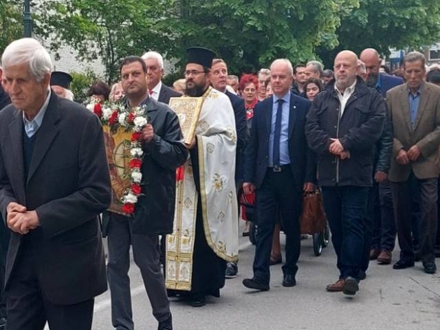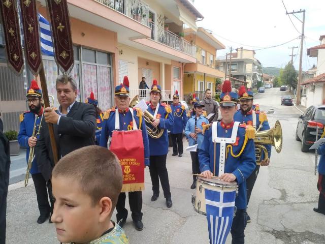 Στη συνέχεια έγινε η λιτάνευση της Ιεράς Εικόνας του Αγίου στους δρόμους του χωριού, συνοδεία της Φιλαρμονικής του Δήμου Τεμπών και αμέσως μετά οι Ιερείς ευλόγησαν τους άρτους στον χώρο της Πλατείας “Βάιος Μαλλιάρας”.