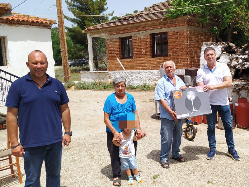 Πρόσφατα, μετά από συνεργασία του Θανάση Παιδή με τις τοπικές Αρχές, μοιράστηκαν ανεμιστήρες σε σεισμόπληκτους κατοίκους της περιοχής Δαμασίου.