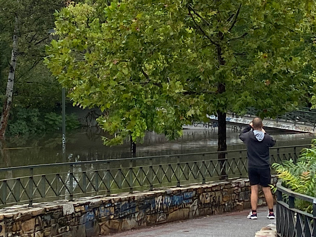 Αρκετός είναι ο κόσμος της Λάρισας που έχει συγκεντρωθεί στη γέφυρα κάτω από τον Αγιο Αχίλλειο και βλέπουνε την στάθμη του νερού να ανεβαίνει απότομα.