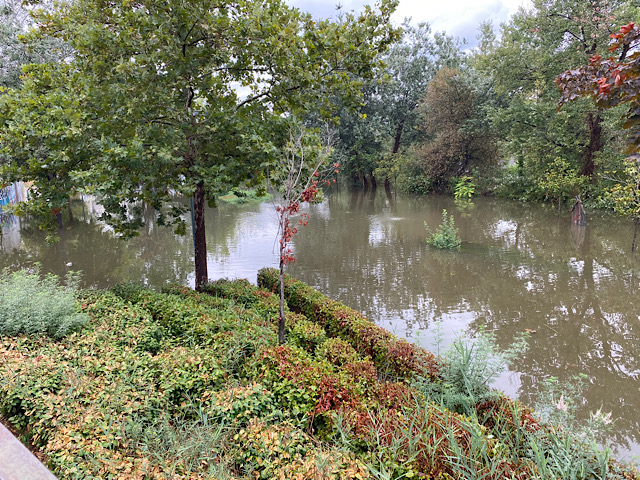 Δραματική είναι εικόνα στην βασική κοιτη του Πηνειού όπου το νερό έχει βγει από το πλάι και έχει χυθεί μέσα στα χωράφια