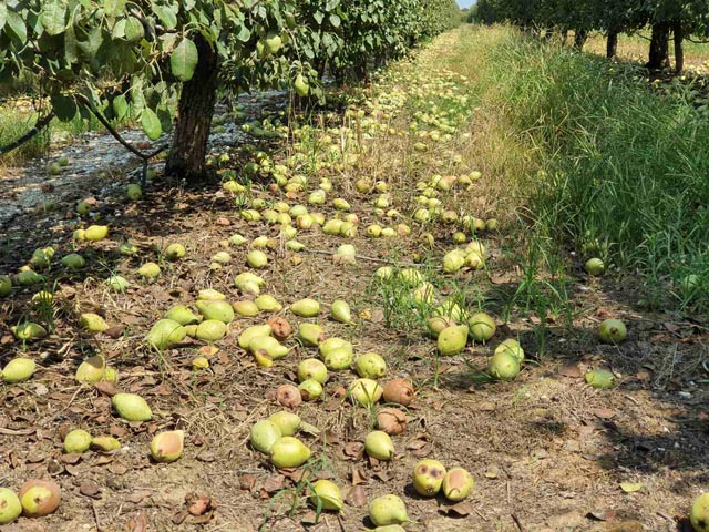 Αποτέλεσμα αυτής της πρωτόγνωρης κατάστασης την φετινή χρονιά είναι οι εικόνες χιλιάδων τόνων αχλαδιού Κρυστάλλι να έχουν μείνει αμάζευτα και να σαπίζουν.