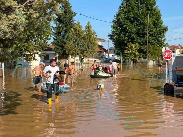 Άμεση εκκένωση της Φαλάννης προς ψηλότερα σημεία το νερό πλησιάζει απειλητικά μετά το γήπεδο.