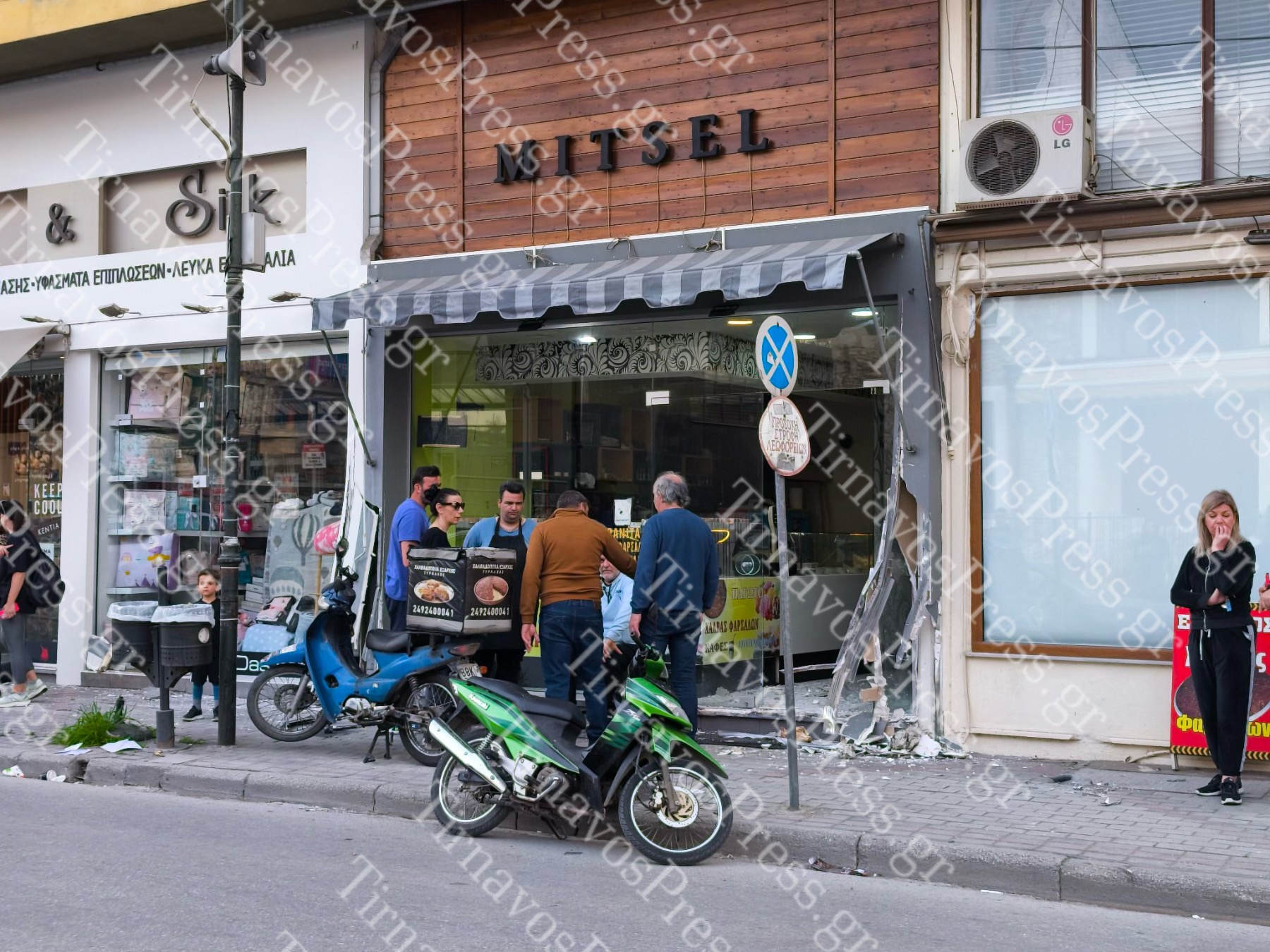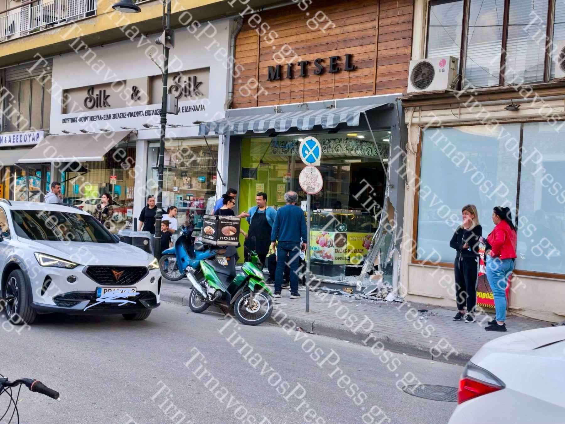 Αναστάτωση προκλήθηκε σήμερα στον Τύρναβο, όταν αυτοκίνητο ξέφυγε από την πορεία του και έπεσε πάνω σε επιχείρηση στην οδό Καραολή & Δημητρίου.