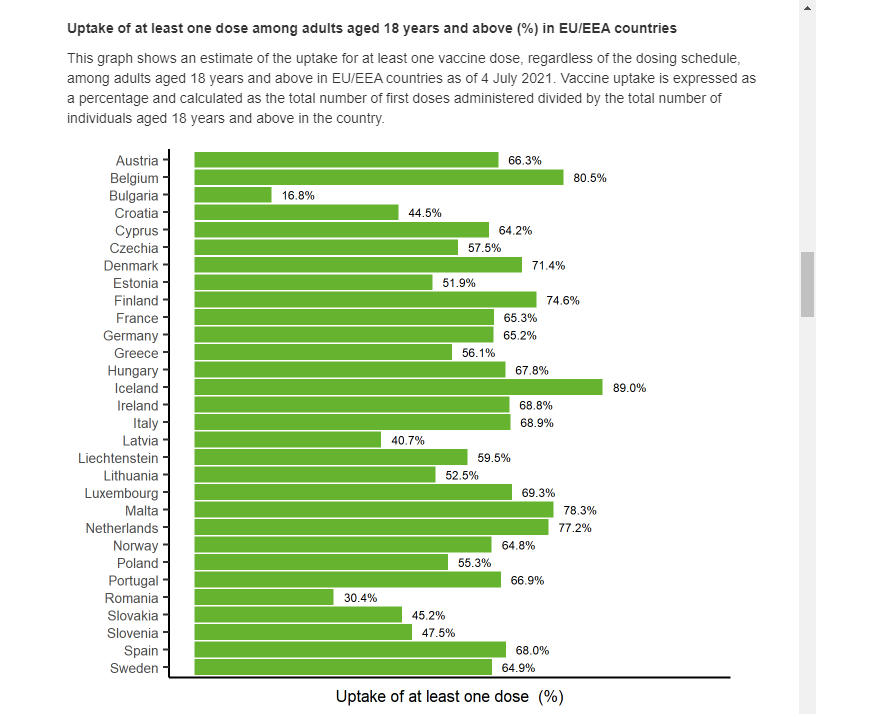 Αποκαλυπτικά είναι τα στοιχεία για την πορεία του εμβολιασμού στην Ευρώπη από το (ECDC)