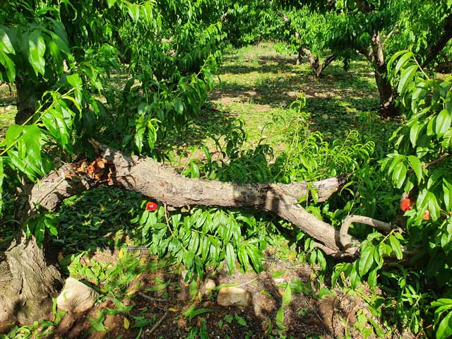 Στα πρώιμα ροδάκινα και νεκταρίνια η ζημιά είναι σημαντική και σε ορισμένα περιβόλια έχουν σπάσει ολόκληρα κλωνάρια.