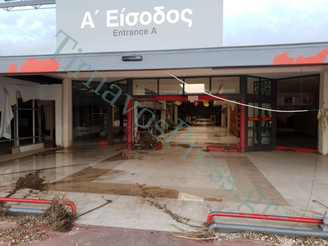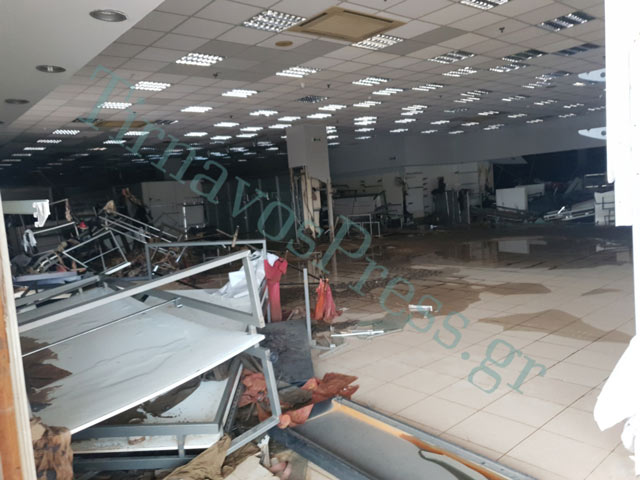Εικόνες απόλυτης καταστροφής στο Σούπερ Μαρκετ Σκλαβενίτης ενώ από το πρατήριο της AEGEAN 50.000 λίτρα καυσίμων βρίσκονται στον Πηνειό.