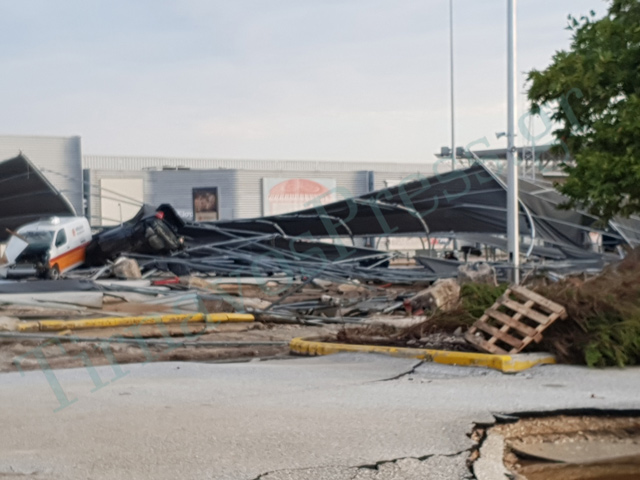 Το Σούπερ Μάρκετ είναι εντελώς κατεστραμμένο στο εξωτερικό του όσο και στο εσωτερικό του. Η καταστροφή στο τεράστιο χώρο που στέγαζε τον Σκλαβενίτη, την Aegean αλλά και δεκάδες άλλα μικρότερα καταστήματα είναι ολοκληρωτική.