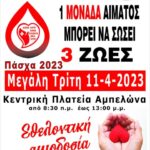 Ακολουθεί όμως και η 100η τακτική Αιμοδοσία του Συλλόγου μας για το Πάσχα, την Μ. Τρίτη 11-4-2023.