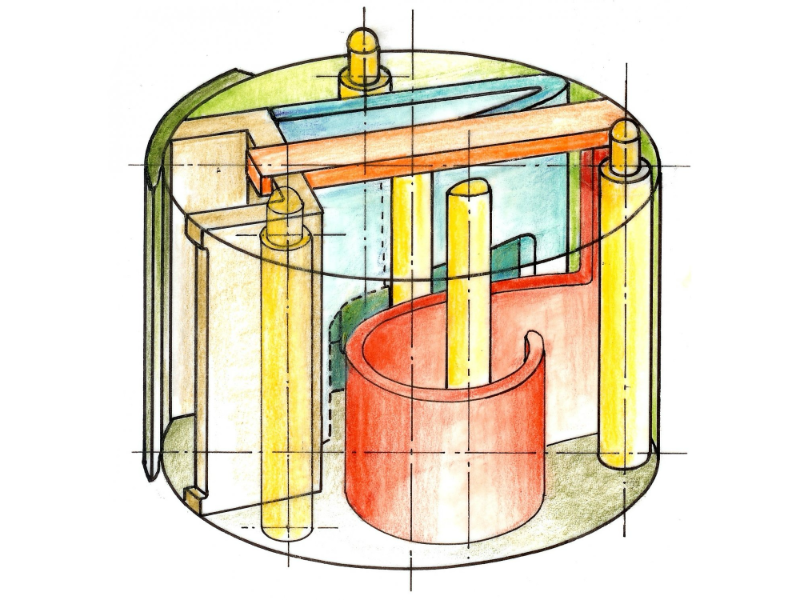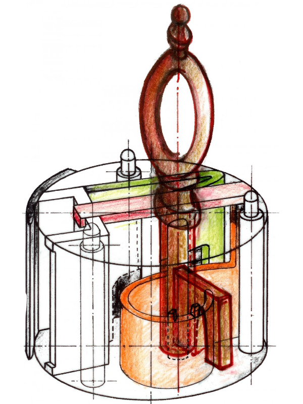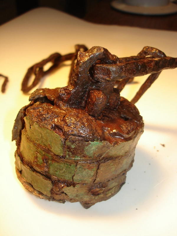 Και πρόσθεσε ότι: «Ο Μηχανισμός είναι μια περίπλοκη, εξειδικευμένη και σπάνια κλειδαριά/λουκέτο, με την εξής λειτουργία: το άκρο της αλυσίδας προσαρμόζεται στο ορθογώνιο άνοιγμα στο κάτω μέρος, ο σύρτης της κλειδαριάς κινείται για να ασφαλίσει τον παγιδευμένο κρίκο της αλυσίδας, το οδοντωτό ελικοειδές έλασμα κινεί τον σύρτη και λειτουργεί με ένα κλειδί που εφαρμόζει στις εγκοπές του. Όταν περιστρέφεται το κλειδί, ο σύρτης τραβιέται προς τον θάλαμο με τον κρίκο. Το ανάστροφο έλασμα λειτουργεί ως στοιχείο ασφαλείας, αποτρέποντας την επιστροφή του σύρτη αφού έχει κλειδώσει».