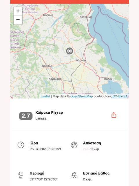 Λίγο μετά της 13.31 σήμερα Κυριακή 30 Ιανουαρίου 2022 είχαμε ασθενής δόνηση 2,7 της κλίμακας ρίχτερ.