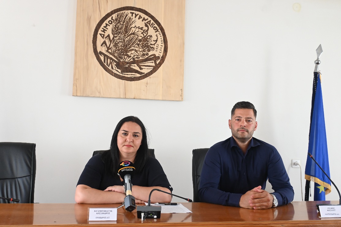Συνέντευξη τύπου παραχώρησαν οι Αντιδήμαρχοι του Δήμου Τυρνάβου κα Ευγενία Μαμανού και ο κ. Νίκος Νταλαγιάννης σήμερα στο Δημαρχείο της πόλης με κύρια θέματα την πυροσβεση και τον Αθλητικό Αύγουστο που ετοιμάζει η δημοτική αρχή