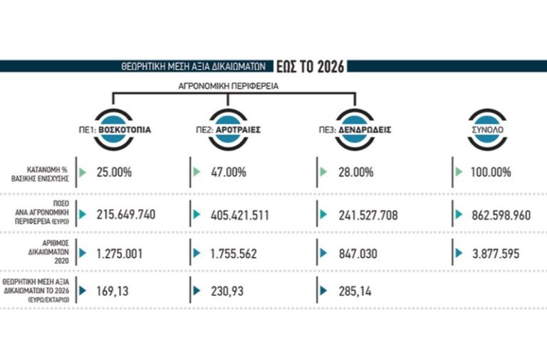 Βασική ενίσχυση μέχρι 29 ευρώ το στρέμμα για τα δένδρα 23 ευρώ για αροτραία και 17 για τα βοσκοτόπια
