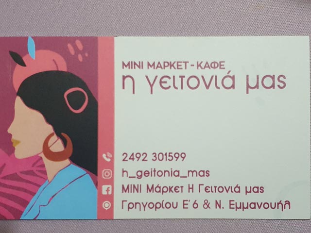 Η επιχείρηση Μίνι Μάρκετ – καφέ, ”Η Γειτονιά Μας” ζητάει άτομο για παραγωγή καφέ. Πληροφορίες στο instagram h_geitonia-mas στο μίνι μάρκετ ”Η Γειτονιά μας” και στο τηλέφωνο: 2492301599